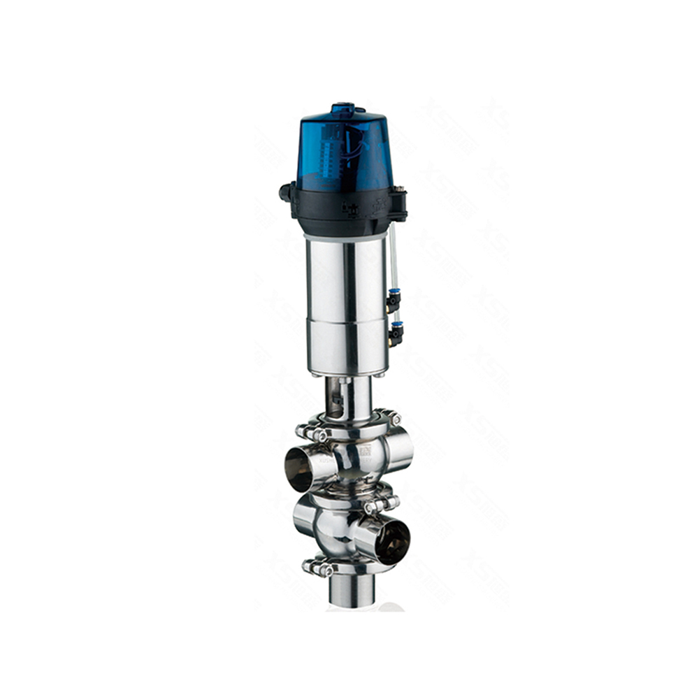 Válvula de desvío de asiento doble TT higiénica de acero inoxidable con cabezal de control