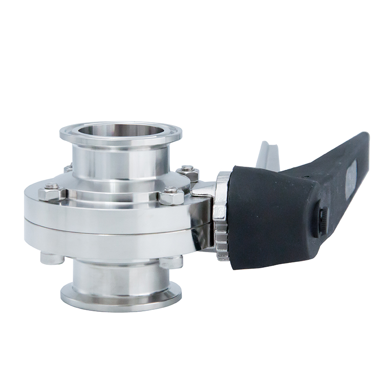 Las válvulas de mariposa sanitarias de acero inoxidable se pueden abrir automáticamente a través del actuador o manualmente con manija.